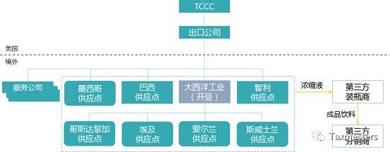 TCCC与第三方装瓶商签订协议,允许其从供应点购买浓缩液。TCCC与供应点之间签订协议,明确TCCC拥有品牌、秘密配方等无形资产,并许可供应点使用其秘密配方、制造规范等无形资产制造浓缩液,还限定其只能按TCCC确定的价格销售浓缩液给第三方装瓶商。协议期限一般为一年,双方均可以提前终止协议。