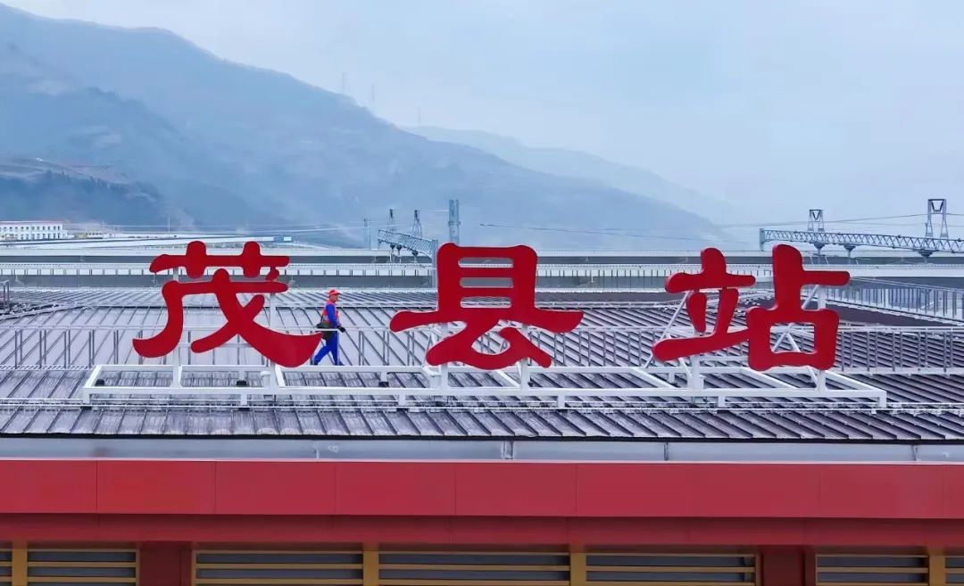 泠冽的冷风迎面刮过脸庞,一个橙色工装背心的身影从大红色的“茂县站”三个大字旁穿过,成为站名牌上的一点亮色。
